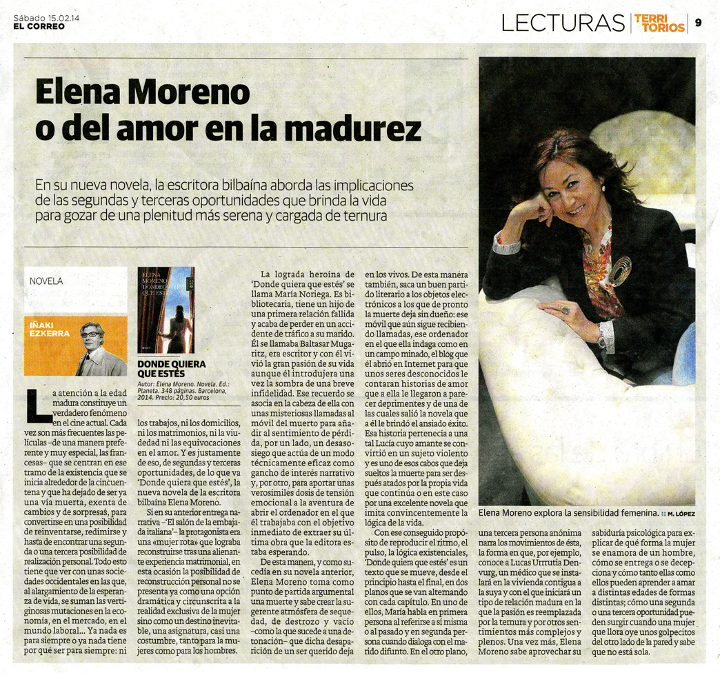 Presentación de la novela Donde quiera que estés de Elena Moreno, Editorial Planeta. Hotel Carlton (Bilbao), 20-02-2014
