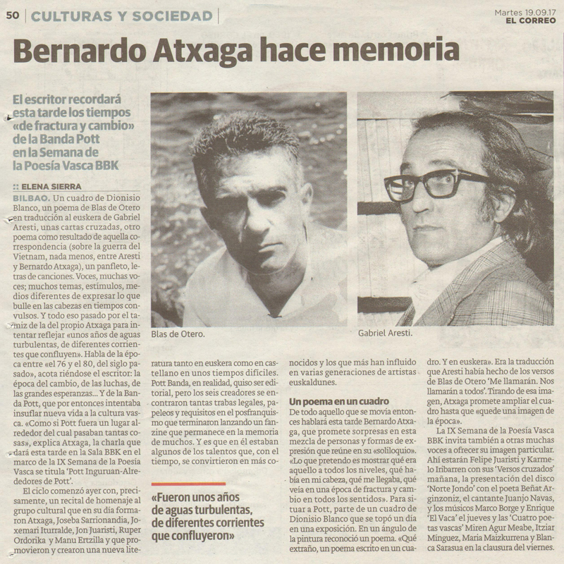 Reportaje sobre un poema en un cuadro de Dionisio Blanco (El Correo p.50), Aresti, Blas de Otero y Bernardo Atxaga.