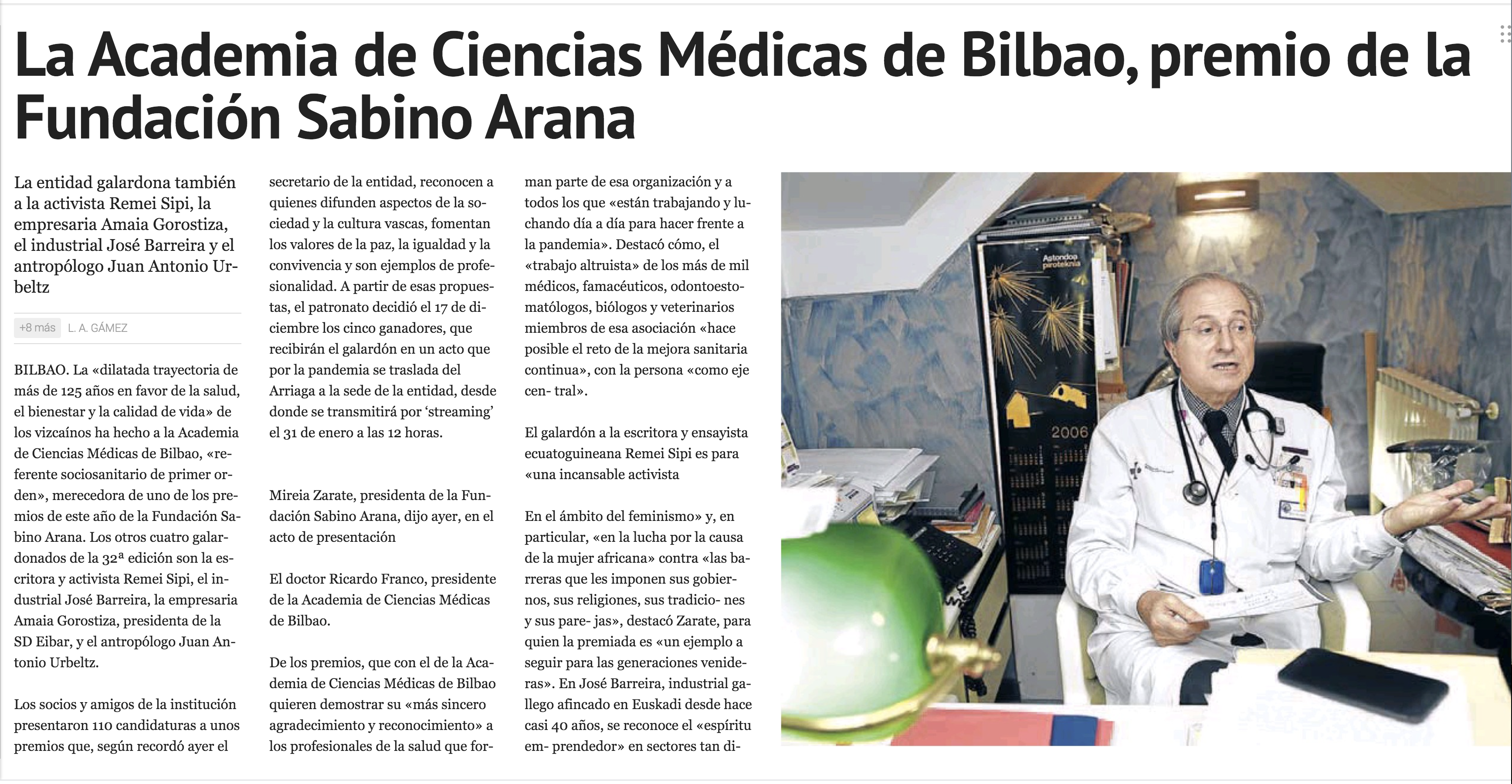 - 2025-03-01 El Correo.com. Juan Ignacio Vidarte recibe el premio de la Sociedad Bilbaina por su trayectoria