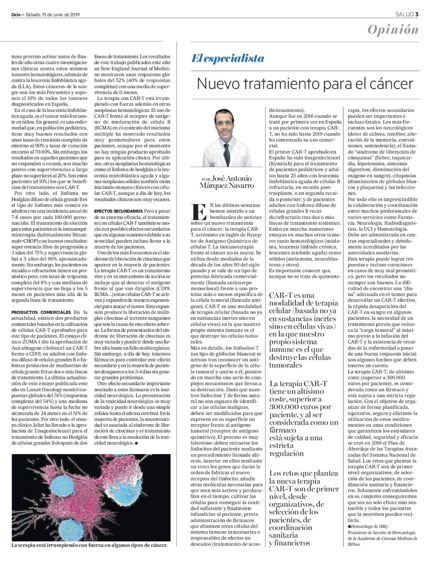 Prensa Deia. Nuevo tratamiento para el cáncer