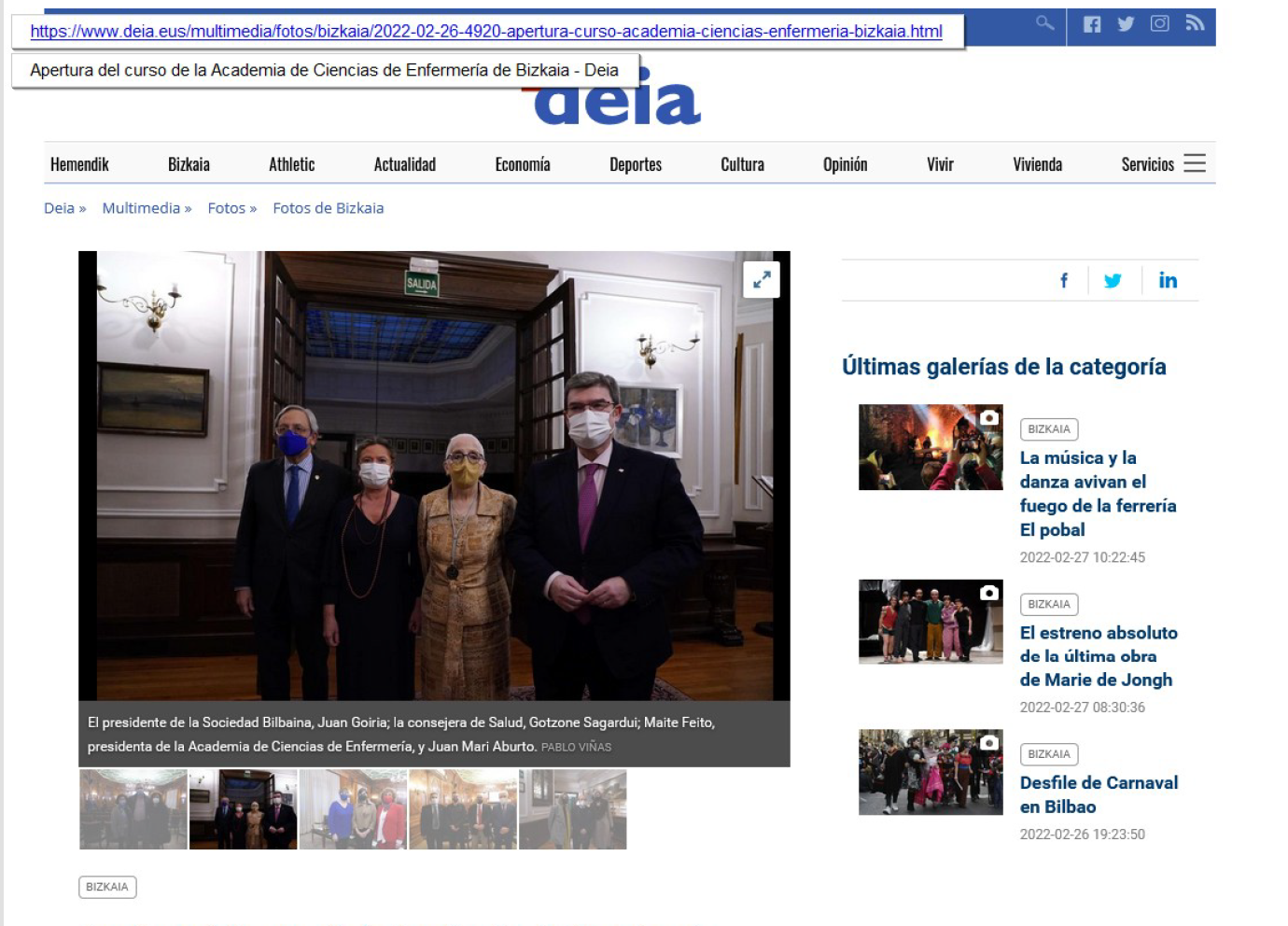 2022-02-25 deia.eus. Apertura del curso de la Academia de Ciencias de Enfermería de Bizkaia