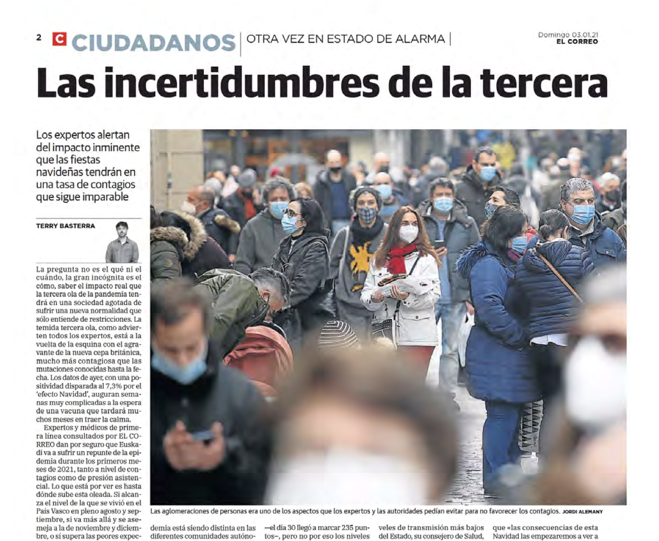 2021-01-03 El Correode Alava. Ricardo Franco. Las incertidumbres de la tercera ola en Euskadi