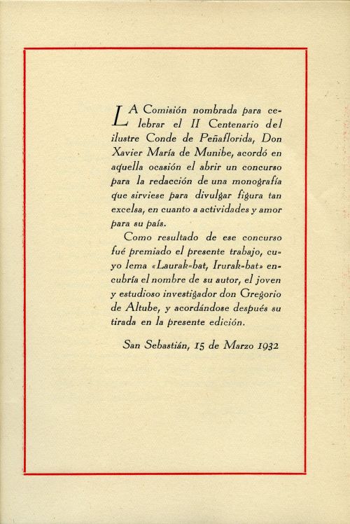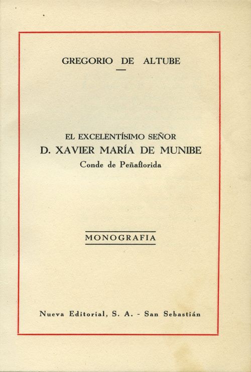 La monografía sobre el excelentisimo señor D. Xavier Maria de Munibe, Conde de Peñaflorida. Por Gregorio de Altube.